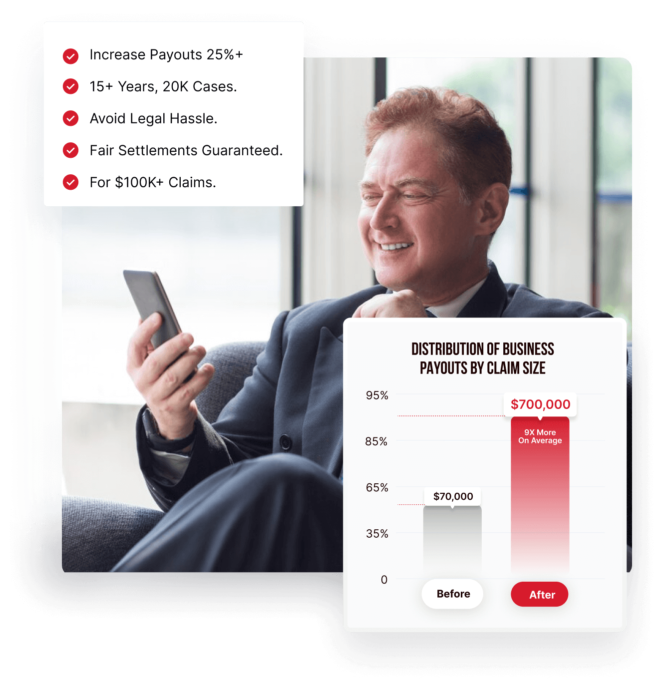 We release key evidence at critical moments to build pressure and your case for a settlement up to 11 times larger.