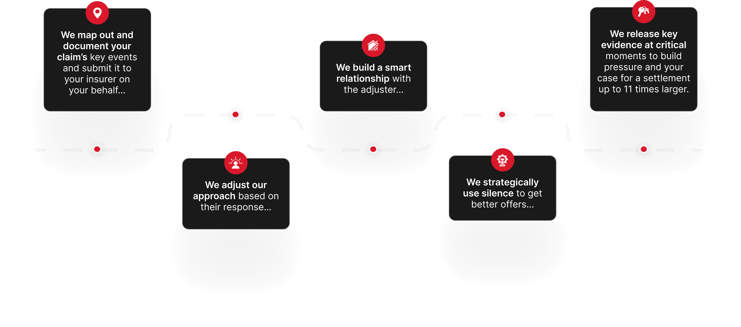 Over the last 15 years of working both sides of the insurance claims industry, we’ve developed a five-step system for increasing settlements by at least 25%, and 900% on average.